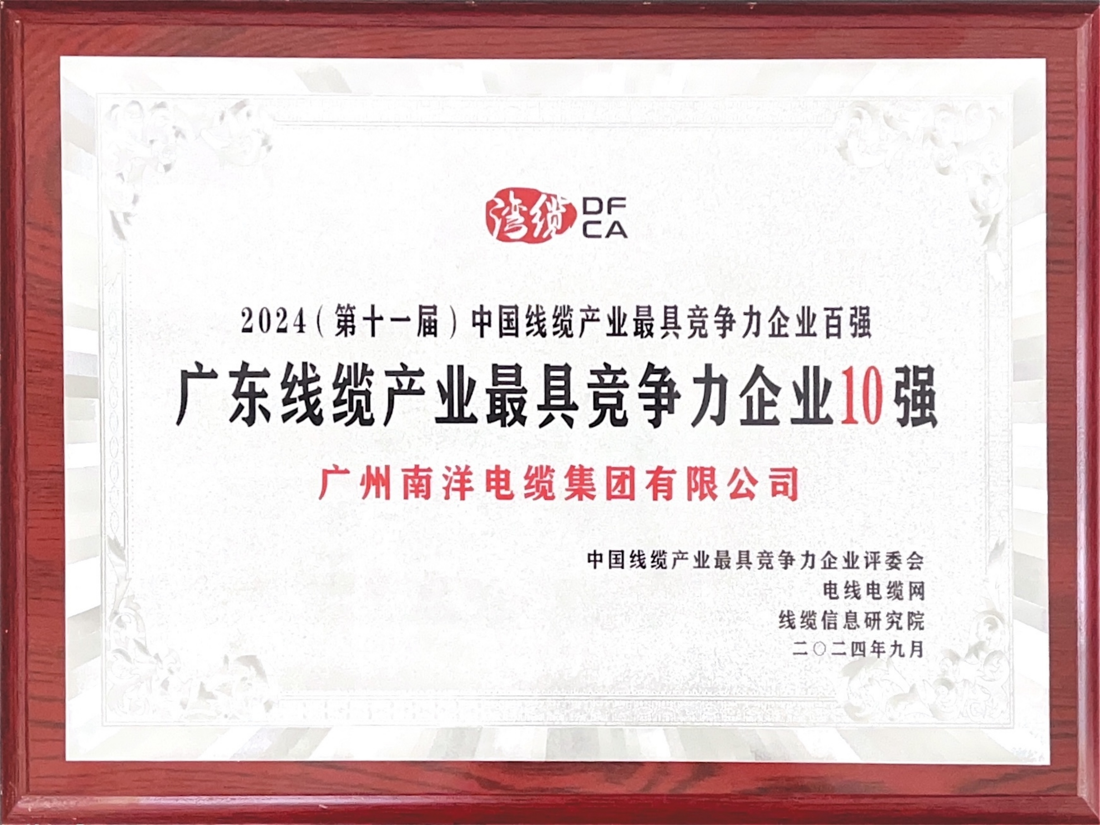 • >喜訊-廣州南洋電纜集團榮獲2025年度中國線纜產業最具競爭力... 2025.08.27